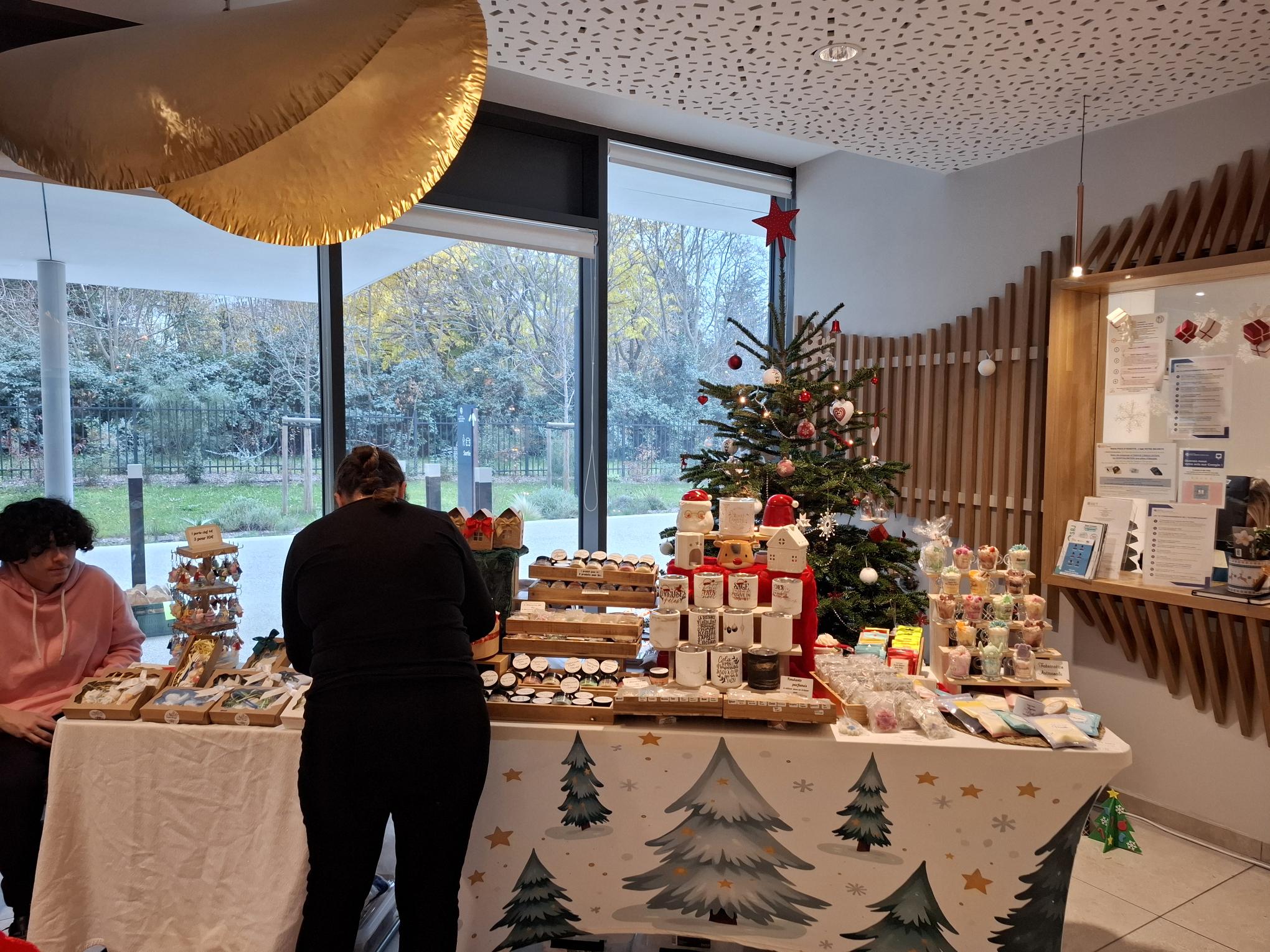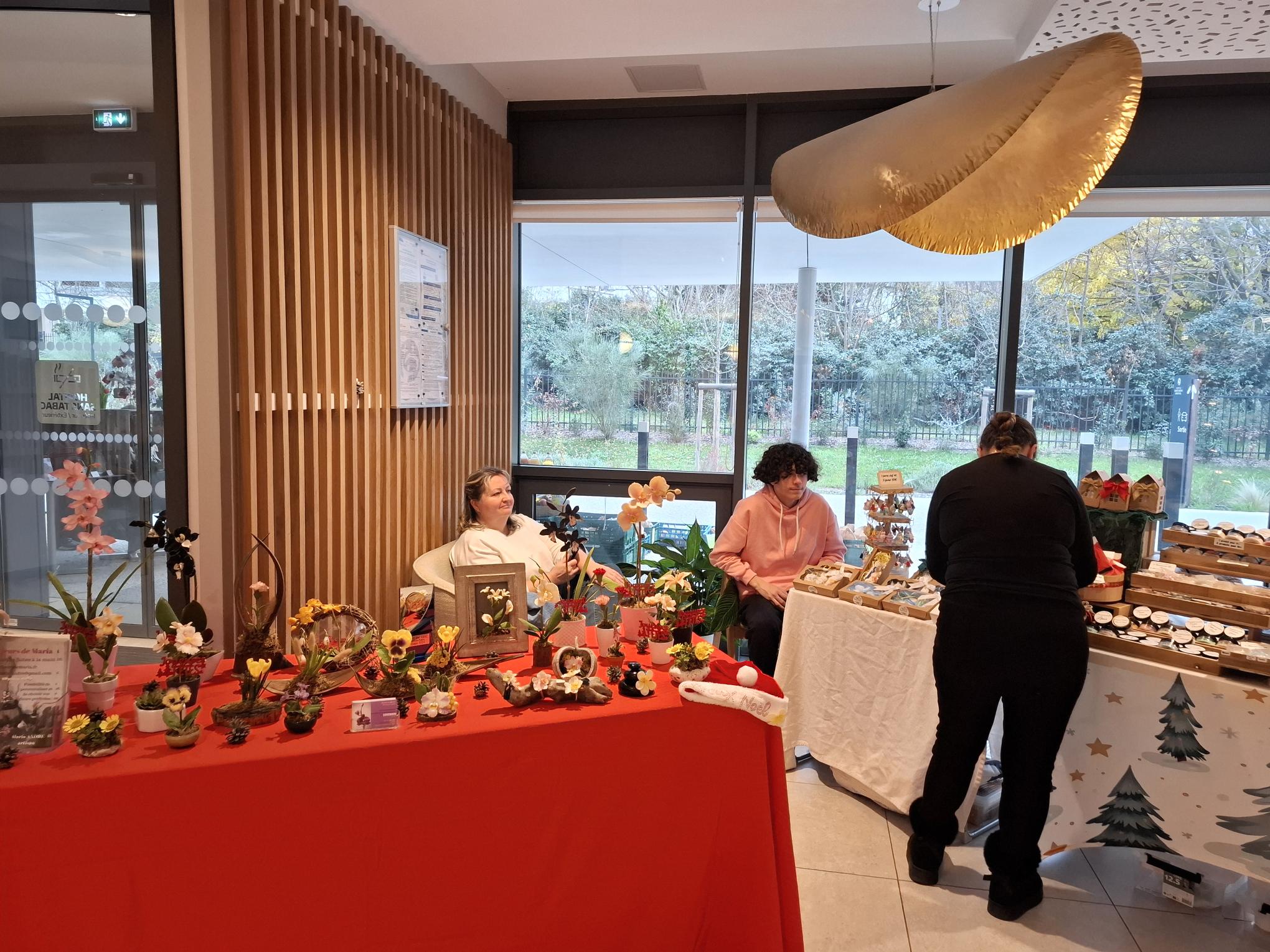 Entre décorations scintillantes et chants de Noël, patients, familles et professionnels ont flâné de stand en stand : fruits et légumes, bougies parfumées, fleurs, bijoux, sacs à main… et bien d’autres trésors encore. L’occasion pour tous de découvrir des produits locaux et artisanaux, et pour certains, de dénicher de belles idées de cadeaux à glisser sous le sapin.